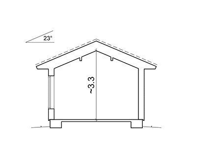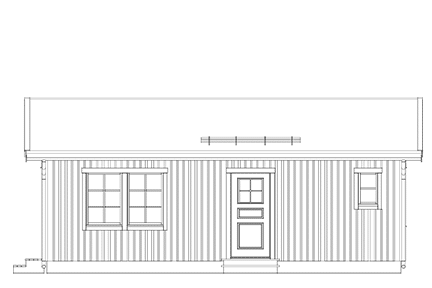 Kompakt fritidshus eller gäststuga på precis över 40 kvadratmeters byggyta. Enplanshuset har två sovrum och vardagsrum/kök i öppen planlösning med ryggåstak som ger rymd.
