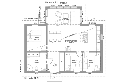 Flera skyddade uteplatser och utgångar skapar kontakt mellan inne- och utemiljö. Här finns både enplans- och lofthus att trivas i.